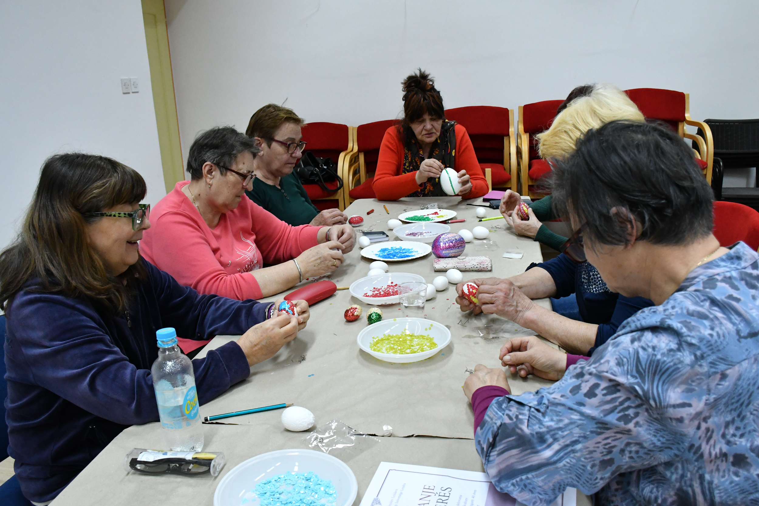 Prvi dan so se pod vodstvom gospe Marije Marič iz društva za razvoj podeželja Pomelaj Lendava izdelovali ptički iz ličja, drugi dan pa je delavnice vodila ga. Rozalija Šooš iz KD Čentiba, ki nas je naučila izdelovanje velikonočnih pirhov okrašenih s pomočjo barvnih flitterjev in bucik.